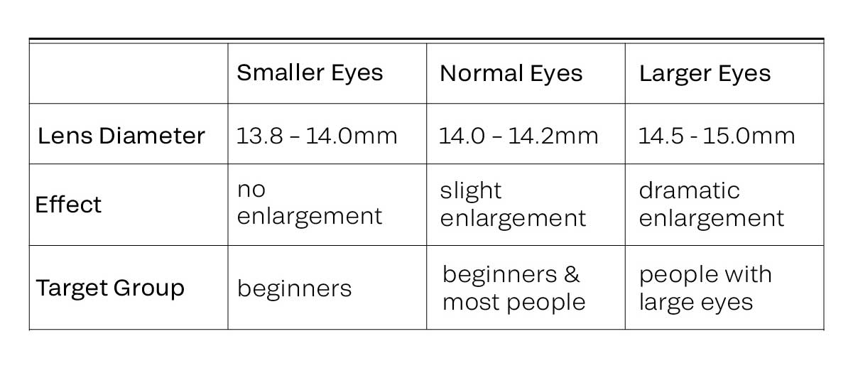 - For larger eyes, consider 14.5mm lenses for a more noticeable effect.