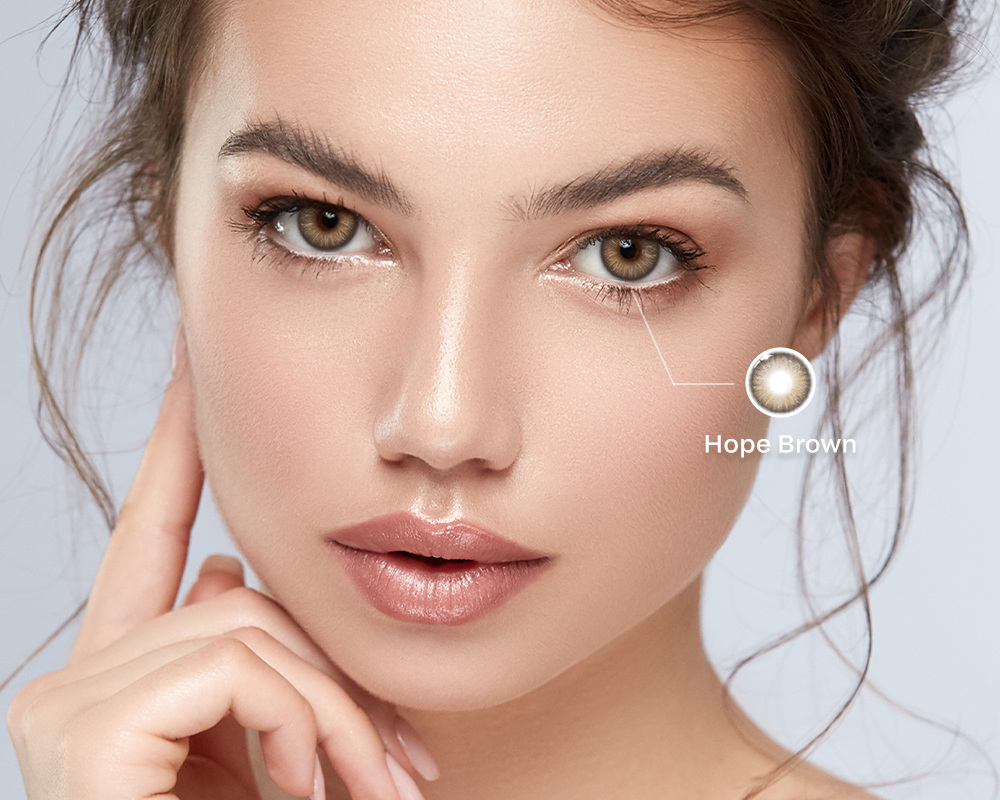 Within this trend, contact lenses are chosen for quiet enhancement. Subtle hazel, honey brown and light olive tones blend seamlessly into the iris, adding clarity and softness rather than visible contrast. Lenses with no harsh limbal ring and a natural iris size pair perfectly with clean eyeliner and lightweight lashes.